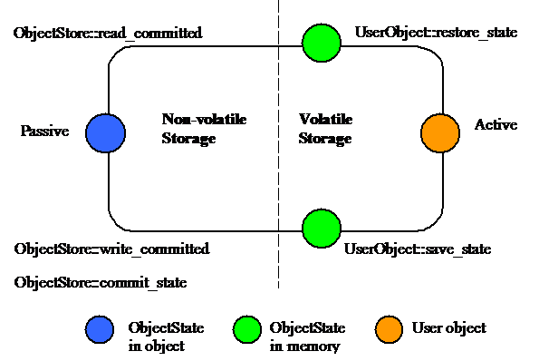 Persistent objects are assigned unique identifiers (instances of the Uid class), when they are created, and this is used to identify them within the object store. States are read using the read_committed operation and written by the write_(un)committed operations.