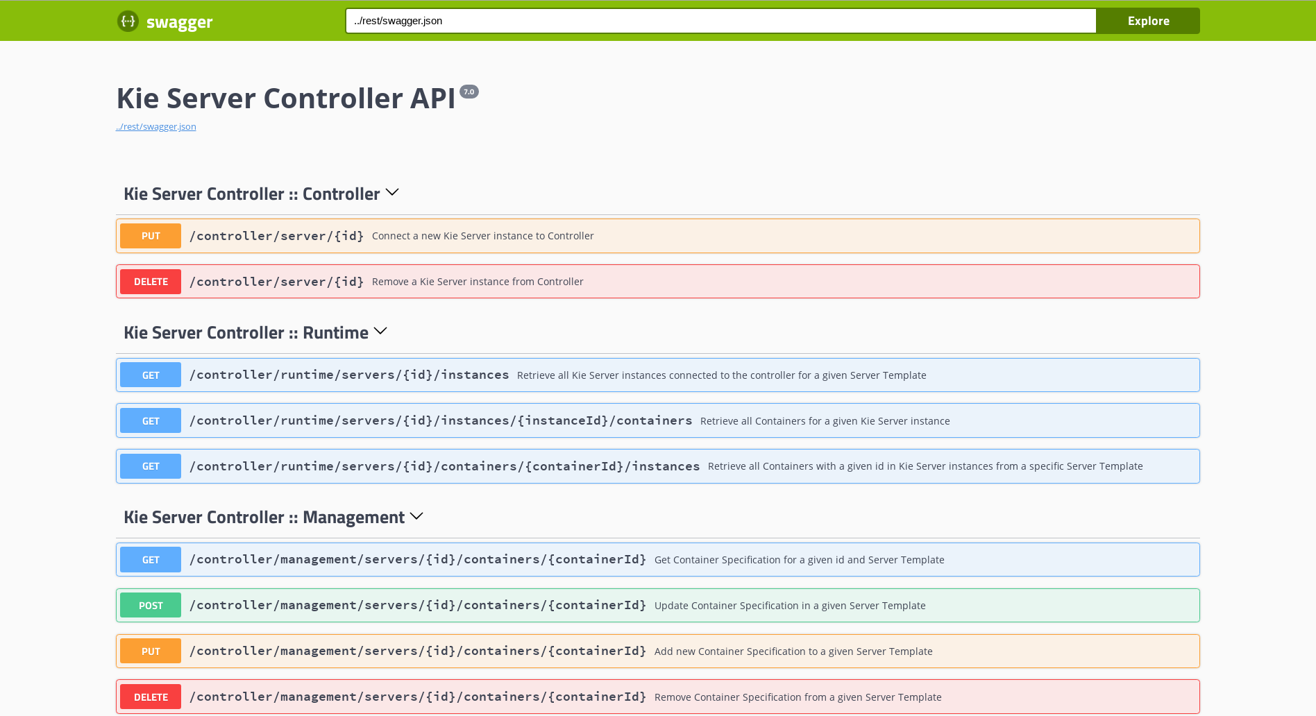 Process definitions management: view the entire list of process currently deployed into a Kie Server and its details.