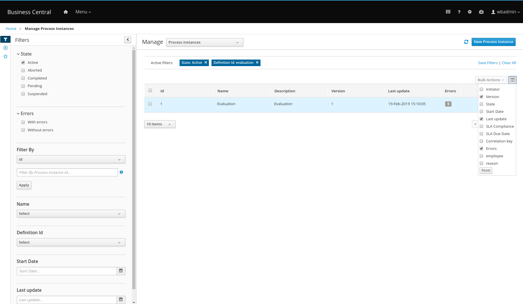 Business processes and all its related runtime information can be managed through Business Central. It is targeted towards process administrators users and its main features include: