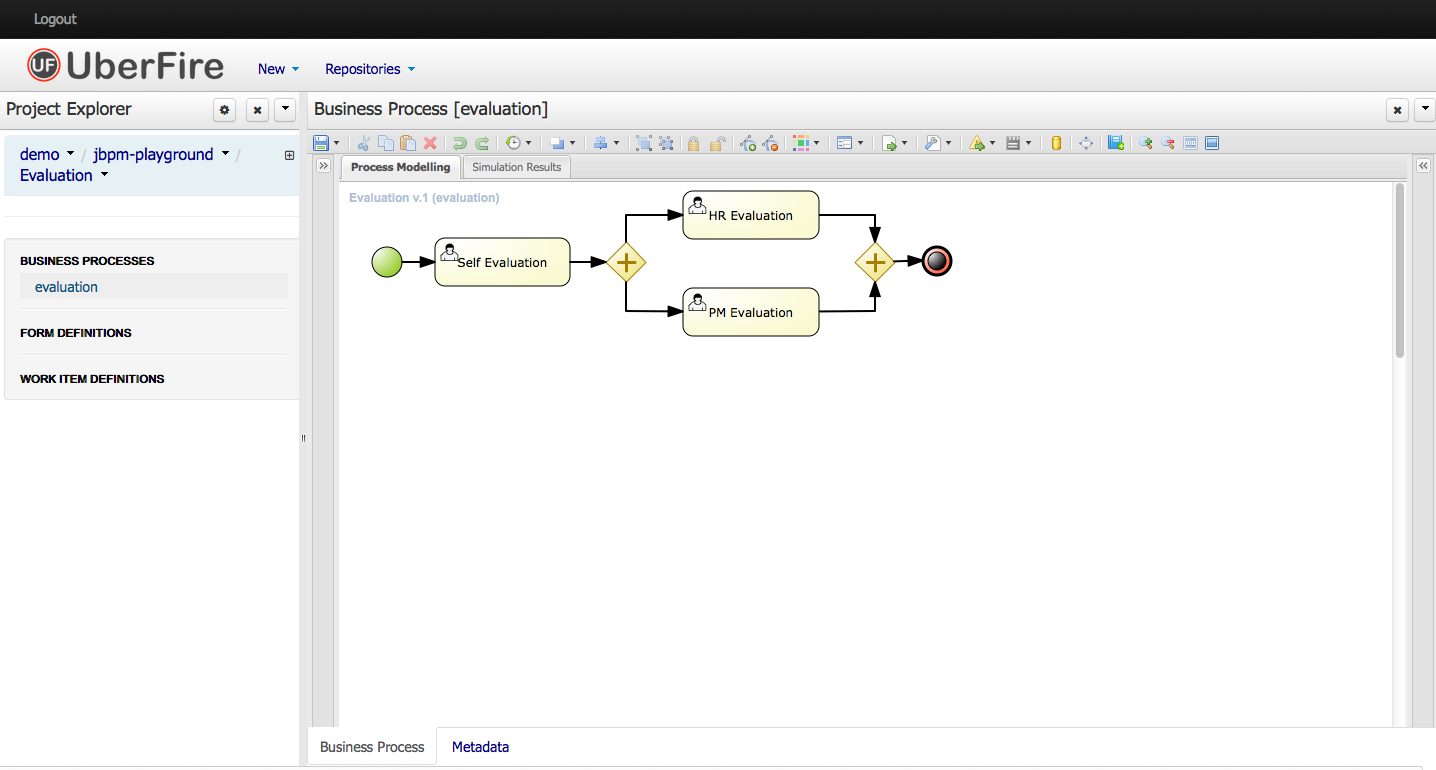 A new web-based form modeler is integrated in the workbench, which allows non-technical users to create forms (for starting processes and/or completing human task). The form modeler is a WYSIWYG editor where you can drag and drop form elements (text boxes, labels, etc.), link it to data that is expected as input or output of the form, customize properties of each element and the layout, etc. These forms are then shown when starting the process or completing a task, integrated into the appropriate runtime views. Check the chapter on Form Modeler in the Workbench Part for all the details.