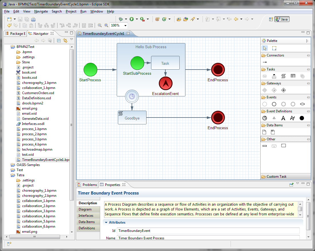 Eclipse-based developer tools to support the modeling, testing and debugging of processes