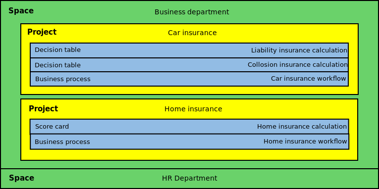 Rule authoring allows you to specify different types of business rules (decision tables, guided rules, etc.) for combination with your processes.