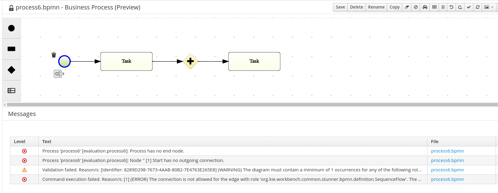 The following two process designers are included in the workbench: the already existing JBPM Designer and the Stunner, the new one. It is important to notice that the previously existing jBPM Designer is still being considered the full BPMN compliant process designer for production and regular use, meanwhile Stunner is available as a preview feature, supporting only a few BPMN elements. More amazing features are still in progress. |