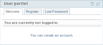 Create a new account by clicking on the "Register" link in the navigation of the portlet, when not logged. A User can then fill in the necessary information to create an account on the system: