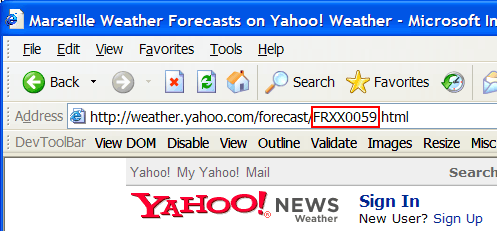 Paste these numbers in to the weather portlet edit form (FRXX0059 in this case):
