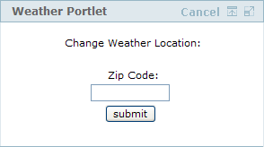 The Weather Portlet retrieves an RSS weather feed, based on a key (commonly a US Postal Code), and displays it as HTML to the user.