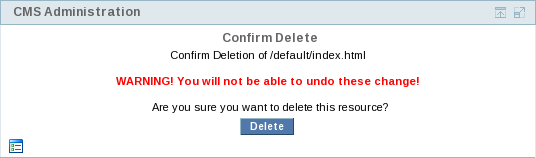 The delete resource confirmation window allows a user to delete a file, or a directory on the system. Note that deleting a directory, will delete the entire tree, so all directories under the deleted one, will also be deleted.