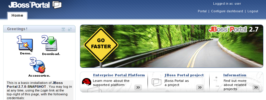 More, on navigating the portal pages and what they contain can be found in, Section 1.2, “Default Portal installation”