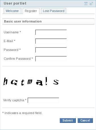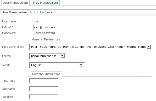 This section covers the user management of the IdentityUserManagementPortlet which is displayed by default. For role management please see Section 4.2, “Managing Roles”.