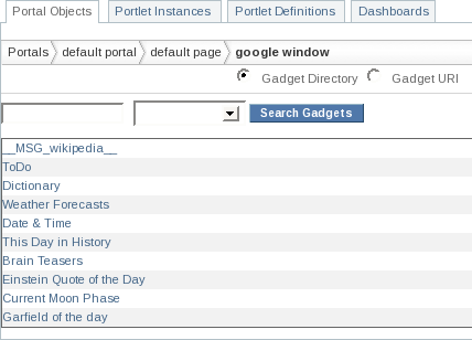 browse by selecting it in the drop-down menu and clicking View portlets.