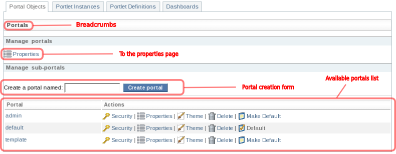 It also allows her to configure the error pages and theme properties as for the other portal objects.