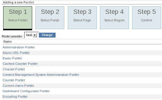 local: this is Portal's portlet container. Any successfully deployed portlet will appear in the list of available portlet definitions for this provider.