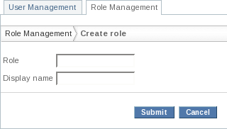 Creating new roles, is accomplished by first clicking on the Create new role link in the portlet.