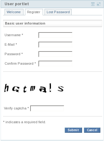 Captcha support: The users are prompted to copy letters from a deformed image. (Disabled by default, see Section 18.2.1, “Captcha support”)