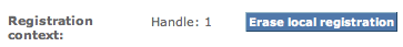 There are rare cases where it might be required to erase the local information without being able to deregister first. This is the case when a consumer is registered with a producer that has been modified by its administrator to not require registration anymore. If that ever was to happen (most likely, it won't), you can erase the local registration information from the consumer so that it can resume interacting with the remote producer. To do so, click on "Erase local registration" button next to the registration context information on the consumer configuration screen: