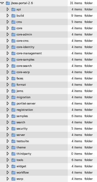 JBoss Portal provides an open source and standards-based environment for hosting and serving a portal's Web interface, publishing and managing its content, and customizing its experience. It is entirely standards-based, and supports the JSR-168 Portlet Specification (Portlet 1.0) and JSR-286 Portlet Specification (Portlet 2.0) , which allows you to easily plug-in standards-compliant portlets to meet your specific portal needs. JBoss Portal is available through the business-friendly LGPL open source license, and the JBoss Enterprise Portal Plarform is supported by JBoss Enterprise Middleware Professional Support and Consulting. JBoss support services are available to assist you in designing, developing, deploying, and ultimately managing your portal environment. JBoss Portal is currently developed by JBoss Enterprise Middleware developers, and community contributors.