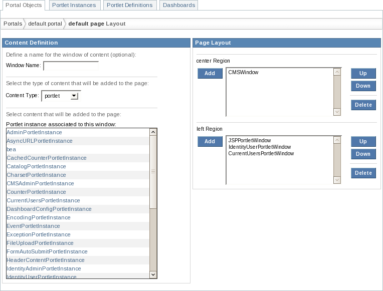 The wizard mode is a fast and easy way to create a new window on a page backed by a portlet instance. The user just needs to define which portlet definition to use, where should the instance be located (portal / page / location on the page) and the wizard will automatically create a new instance of the portlet, create a window for it and add that window to the specified region on the page defined by the user.