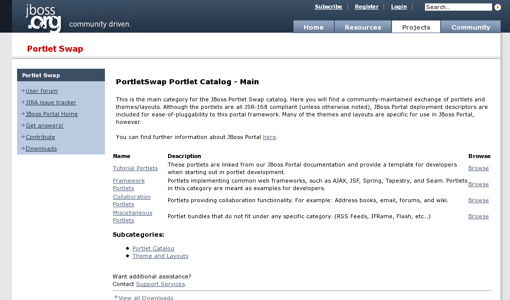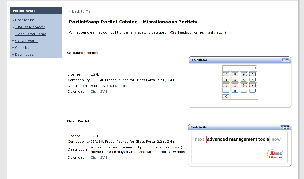 Let's add a portlet from Portletswap to the JBoss Portal we have running. Open a browser to the following URL: http://www.portletswap.com (Figure 39).