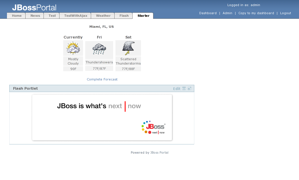 Click on the "Portal" link in the upper right of the page. Click on the Starter portal page, and the "flash" portlet is displayed (Figure 48).