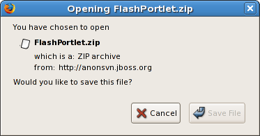 Click on the "Zip" link below the description for the Flash Portlet. The download dialog will appear (Figure 42).
