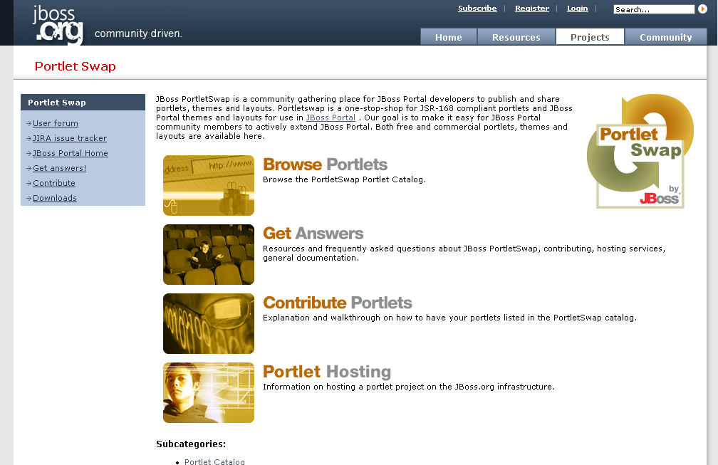 Figure 40. Portlet categories on portletswap.