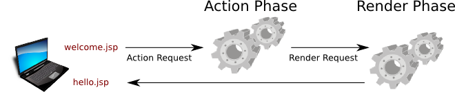 On the third method, first the action phase is triggered then later in the request, the render phase is triggered, which output some content back to the web browser based on the available render parameters.