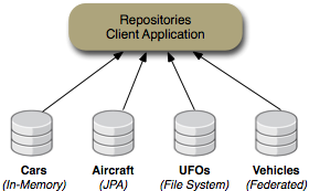 The "Cars" repository is an in-memory repository (using the In-Memory repository connector), the "Aircraft" repository is a JPA repository
