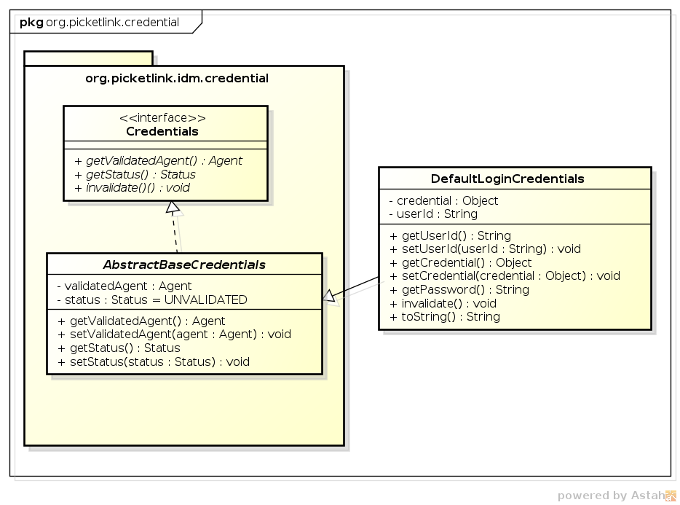 The DefaultLoginCredentials bean is provided by PicketLink as a convenience, and is intended to