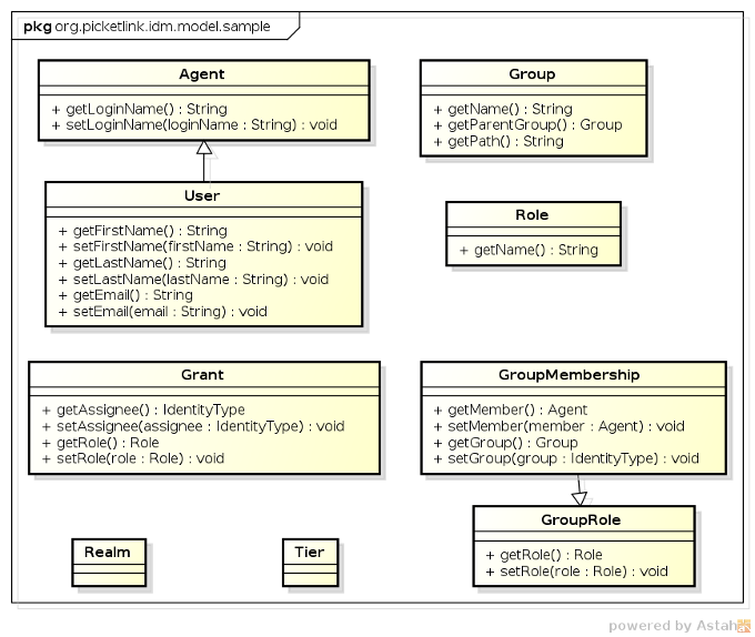 PicketLink IDM provides a number of basic implementations of the identity model interfaces for convenience, in the