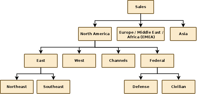 The following code demonstrates how we would create the hypothetical Sales group which is displayed at the head of the above organisational chart: