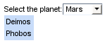 We begin with the common behavior description. When a page is rendered you see only one select box with the list of planets. When you select a planet the <h:dataTable> containing moons of the selected planet appears.