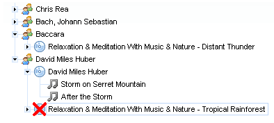 There is also one thing that has to be remembered using "type" and "rendered" attributes: it's possible to define several <rich:treeNode> components with equal values of "type" attribute and different values of "rendered" attribute. It provides a possibility to define different representation styles for the same node types. In the example with artists and their albums (see above) it's possible to represent albums that are available for sale and albums that are not available. Please study the example below: