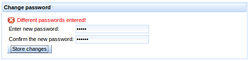 The example demonstrates a simple form for changing a password. The two entered passwords must match, so a <rich:graphValidator> component is used for cross-field validation.