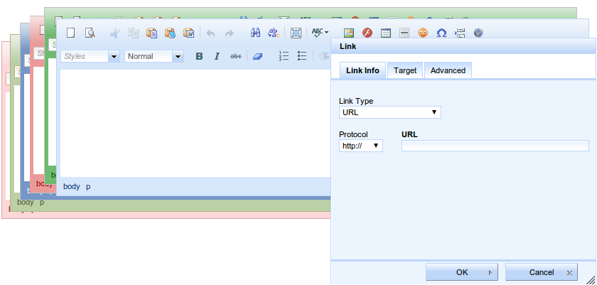 When rendering a <r:editor>, a textarea is rendered to the page and once the page is completely loaded (ready state), the textarea is enhanced using a CKEditor script and replaced with a full-featured WYSIWYG editor.