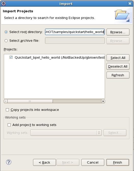 You have to copy your BPEL artifact (say hello_world.jar) into a farm folder. This is