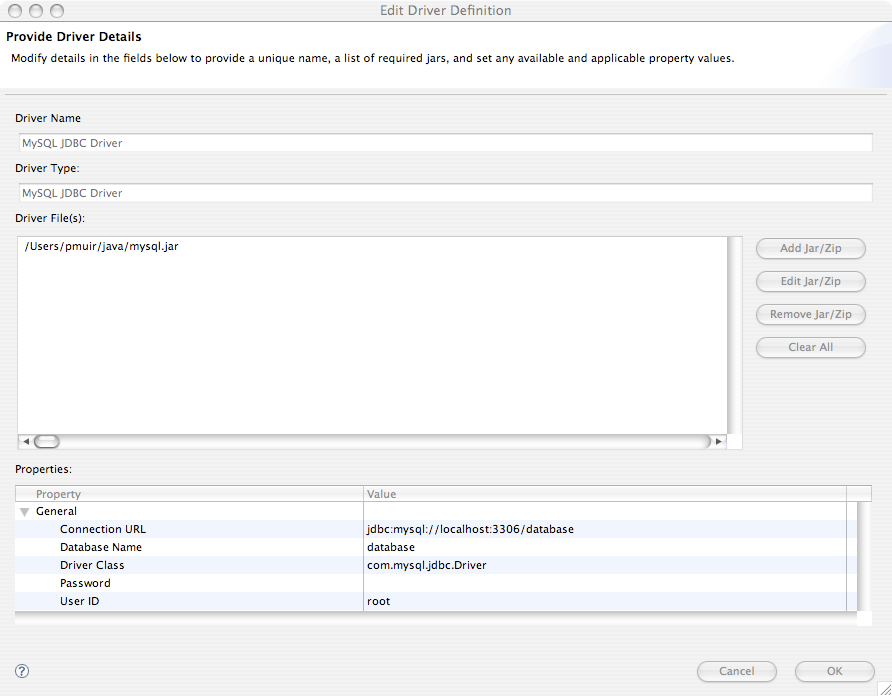 JBoss Tools doesn't come with drivers for any databases, so you need to tell JBoss Tools where the MySQL JDBC driver is. Tell it about the driver by clicking ....