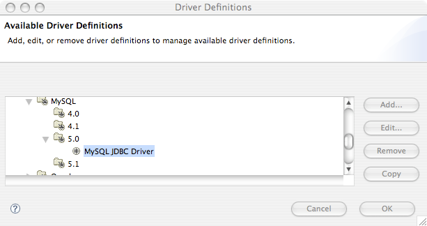 JBoss Tools doesn't come with drivers for any databases, so you need to tell JBoss Tools where the MySQL JDBC driver is. Tell it about the driver by clicking ....