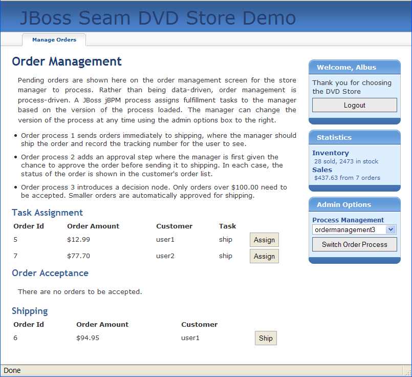 Opzionalmente Seam può fornire una gestione trasparente del processo di business tramite jBPM. Non ci crederai quanto è facile implementare workflow complessi, collaborazioni ed una gestione dei compiti utilizzando jBPM e Seam.