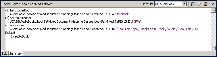 To view the choice editor, right-click on the choice node in the mapping diagram's XML Document tree view and select Edit from the right-click pop up menu.