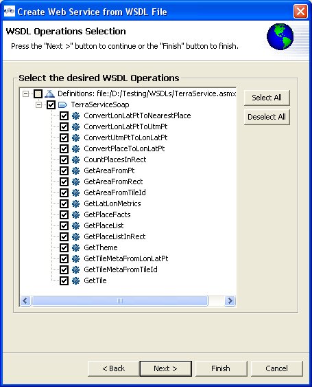 Step 5 - The next page WSDL Operations Selection allows customizing the resulting content of your Web Service model by selecting/deselecting various operations and interfaces in the following dialog.