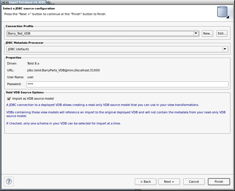 This collection of Source Metadata comprises a direct mapping of the information sources within your enterprise. If you use the Teiid Designer Server for information integration, this technical metadata plays an integral part in query resolution.