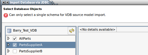 Step 4 - On the 3rd page, titled Select Database Objects, select a single schema to use to create as VDB source model.