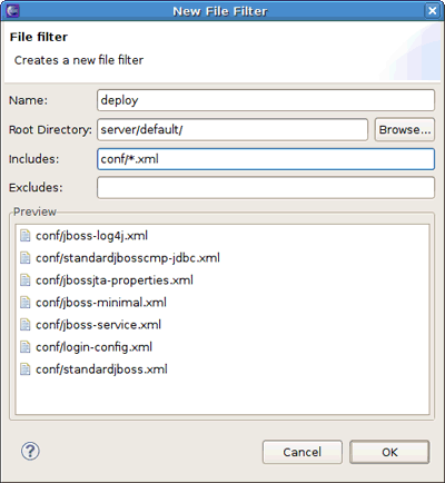 Below that, the fileset requires only an Includes and excludes pattern. As you type in either of these fields, the preview viewer will list those files that are matched.
