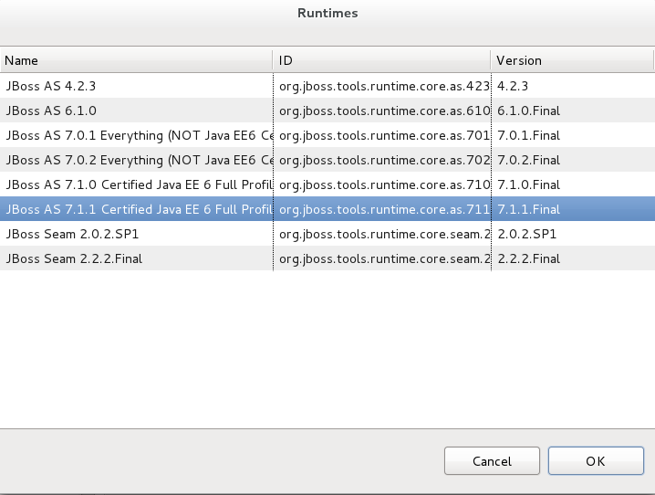 In JBoss Tools, the main purpose of Server Runtimes is to point to a server installation somewhere on disk. In our case, this will be a JBoss installation. It can then be used for two primary purposes, as mentioned above: