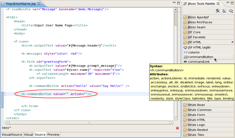 This chapter will introduce you to the functionality provided by JBoss Tools Palette. The Palette allows you to quickly and easily create your JSP or JSF pages.