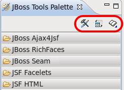 The JBoss Tools Palette contains existing libraries of tags, and the Palette editor provides a way to add a new library, or edit existing libraries.