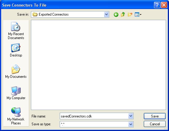 You can import your custom connector types and connectors into Designer. These connectors can be in the form of a *.cdk file (i.e. exported from Designer) or from a *.caf (connector archive file) defined during connector development.