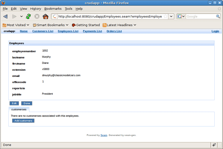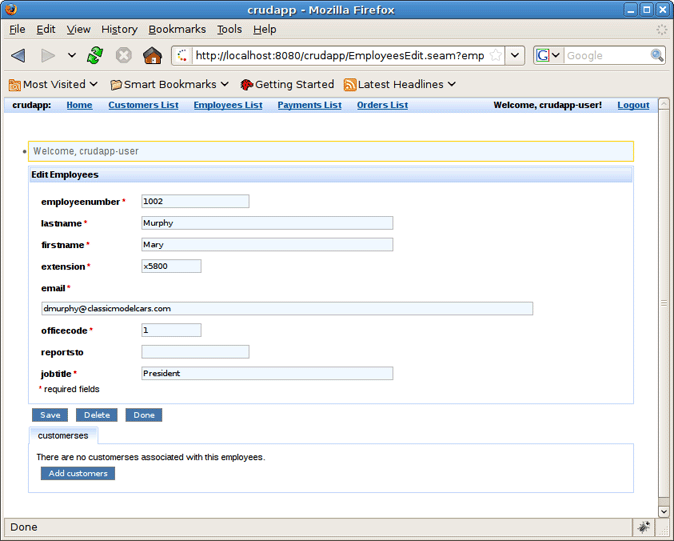 After you familiarized oneself with example of creating the CRUD Database Application with Seam, you can read this charter.